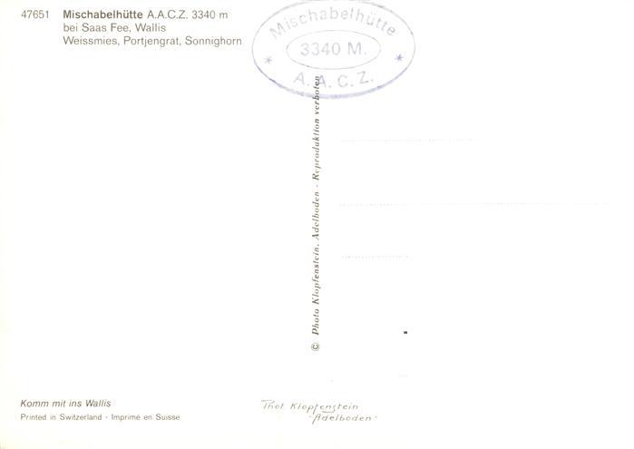 13883261 Mischabelhuette 3329m Saas-Fee VS Panorama mit Weissmies Portjengrat Sonnighorn postalisch nicht gelaufen Erhaltung siehe scans [WerneD78] KatCode: 11470230750738