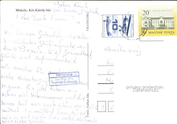 old postcard Miskolc Kos Karoly-Has postalisch gelaufen Erhaltung siehe scans
