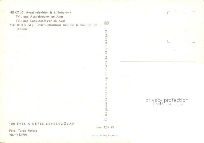 Miskolc TV und Aussichtsturm auf Avas postalisch nicht gelaufen Erhaltung siehe scans