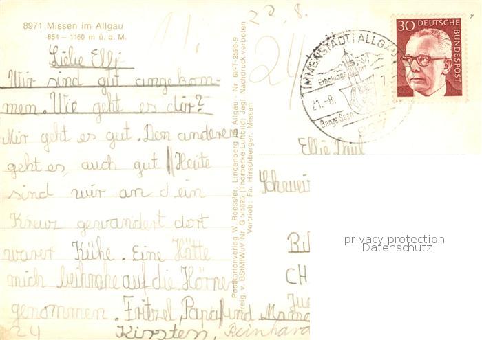 73118942 alte Postkarte Missen Oberallgaeu Fliegeraufnahme postalisch gelaufen Erhaltung siehe scans [LiesaD40] KatCode: 11110009780127