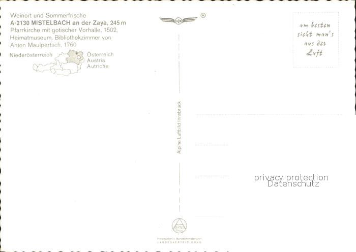 72139615 Mistelbach Niederoesterreich an der Zaya Fliegeraufnahme postalisch nicht gelaufen Erhaltung siehe scans KatCode: 11390125031633