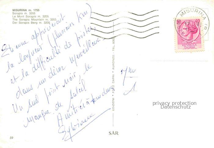 74026547 old postcard Misurina Veneto IT Winterpanorama Monte Sorapis postalisch gelaufen Erhaltung siehe scans [FriedD77] KatCode: 11240