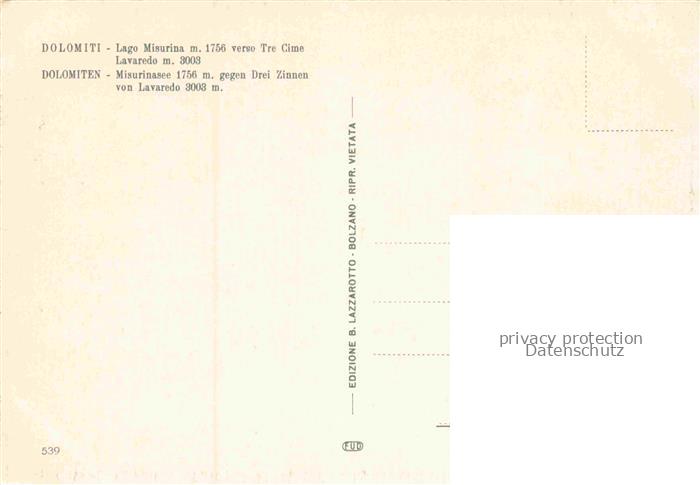 74079679 Misurinasee Auronzo Cadore IT mit den Drei Zinnen von Lavaredo postalisch nicht gelaufen Erhaltung siehe scans [WerneD78] KatCode: 11240