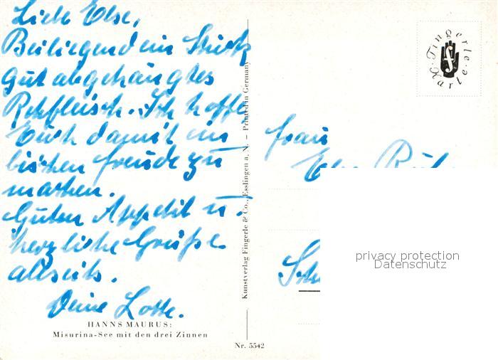 Misurinasee Drei Zinnen K?nstlerkarte Hanns Maurus postalisch nicht gelaufen Erhaltung siehe scans [PaolaD17]