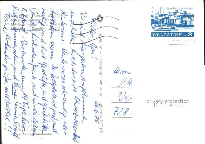 old postcard Mitschurin Zarewo Camping Oasis Ferienhaeuser Strand postalisch gelaufen Erhaltung siehe scans