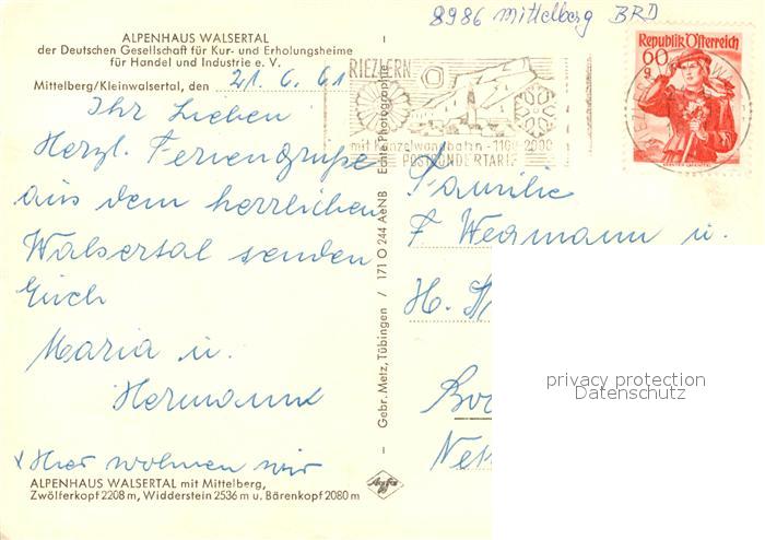 73102806 alte Postkarte Mittelberg Boedmen Alpenhaus Walsertal postalisch gelaufen Erhaltung siehe scans [KathaD81] KatCode: 11390