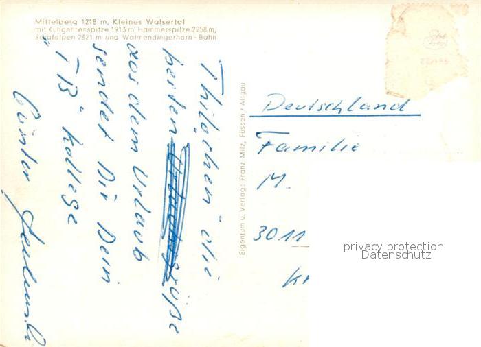 73084183 alte Postkarte Mittelberg Boedmen Kuhgehrenspitze Hammerspitze Schafalpen Walmendingerhorn postalisch gelaufen Erhaltung siehe scans [KathaD81] KatCode: 11390
