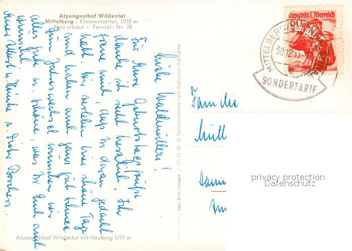 73629034 alte Postkarte Mittelberg Kleinwalsertal Alpengasthof Wildental postalisch gelaufen Erhaltung siehe scans [WerneD78] KatCode: 11390