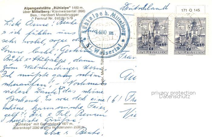 12942254 alte Postkarte Mittelberg Kleinwalsertal Alpengaststaette Buehlalpe postalisch gelaufen Erhaltung siehe scans [NatalD47] KatCode: 11390