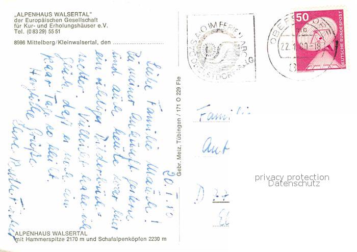 72705184 alte Postkarte Mittelberg Kleinwalsertal Alpenhaus Walsertal postalisch gelaufen Erhaltung siehe scans [AndreD76] KatCode: 11390