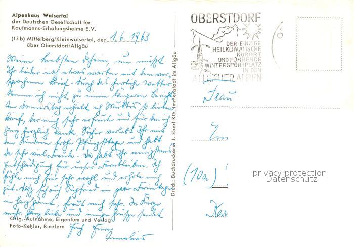 73167784 alte Postkarte Mittelberg Kleinwalsertal Alpenhaus Walsertal postalisch gelaufen Erhaltung siehe scans [LiesaD40] KatCode: 11390