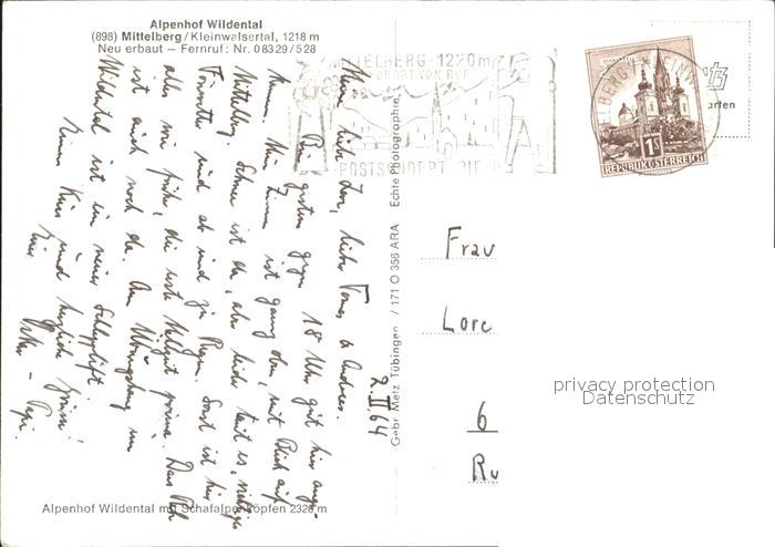 72121961 alte Postkarte Mittelberg Kleinwalsertal Alpenhof Wildental postalisch gelaufen Erhaltung siehe scans KatCode: 11390