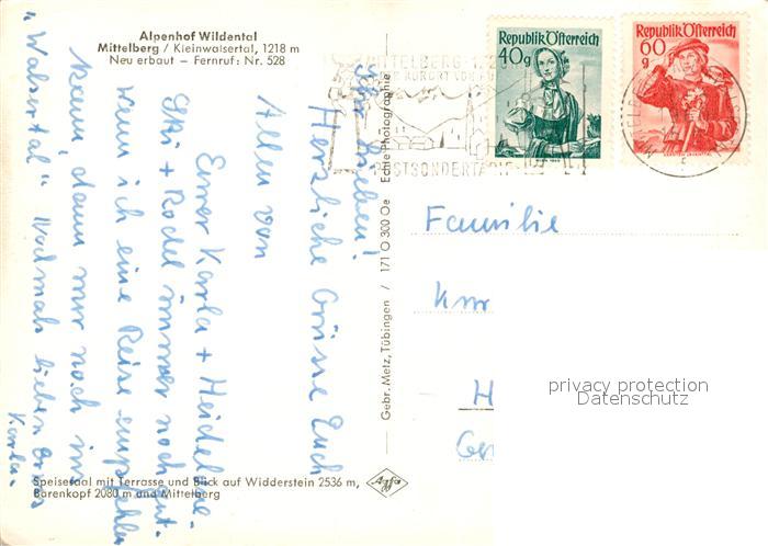 73294847 alte Postkarte Mittelberg Kleinwalsertal Alpenhof Wildental postalisch gelaufen Erhaltung siehe scans [NatalD47] KatCode: 11390