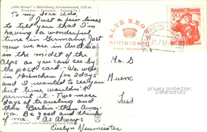 72431421 alte Postkarte Mittelberg Kleinwalsertal Alte Krone postalisch gelaufen Erhaltung siehe scans KatCode: 11390