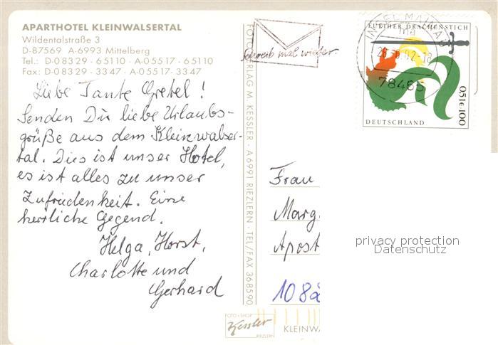 73102381 alte Postkarte Mittelberg Kleinwalsertal Aparthotel Kleinwalsertal postalisch gelaufen Erhaltung siehe scans [PaolaD17] KatCode: 11390