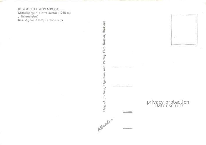 74099530 MITTELBERG Kleinwalsertal AT Berghotel Alpenrose Hirtenstube postalisch nicht gelaufen Erhaltung siehe scans [WerneD78] KatCode: 11390