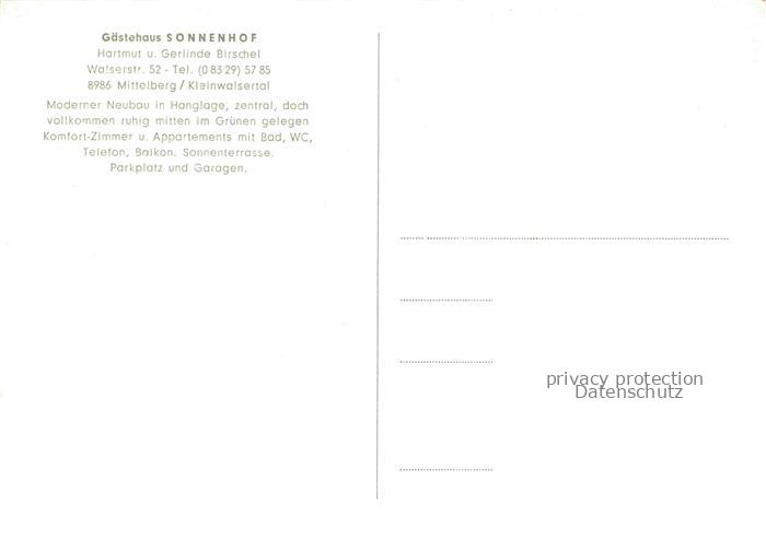 74152196 MITTELBERG Kleinwalsertal AT Gasthof Sonnenhof postalisch nicht gelaufen Erhaltung siehe scans [WerneD78] KatCode: 11390