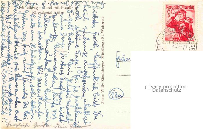 34142822 alte Postkarte MITTELBERG Kleinwalsertal AT Panorama Tobel mit Heuberg Winterlandschaft postalisch gelaufen Erhaltung siehe scans [FriedD77] KatCode: 11390