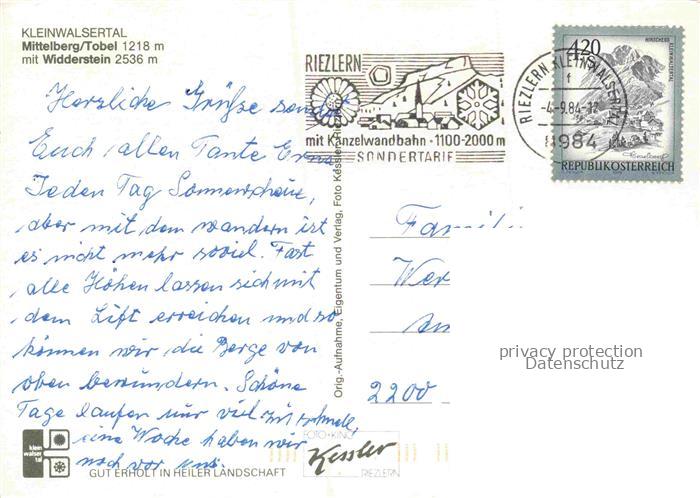 74142194 alte Postkarte MITTELBERG Kleinwalsertal AT Tobel Widderstein postalisch gelaufen Erhaltung siehe scans [SanaeD93] KatCode: 11390