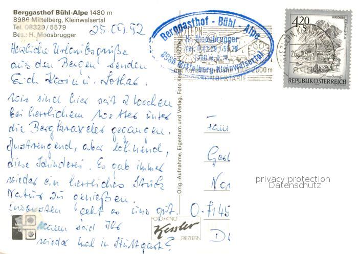 73046403 alte Postkarte Mittelberg Kleinwalsertal Berggasthof Buehl Alpe Winterlandschaft postalisch gelaufen Erhaltung siehe scans [KathaD81] KatCode: 11390