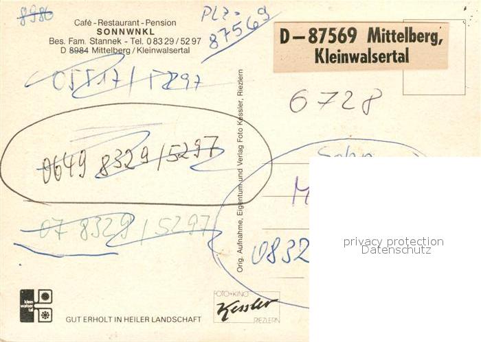 13153579 Mittelberg Kleinwalsertal Cafe Restaurant Pension Sonnwinkl postalisch nicht gelaufen Erhaltung siehe scans [FriedD77] KatCode: 11390
