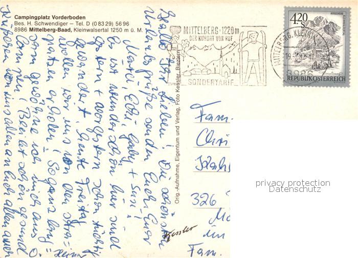 73521462 alte Postkarte Mittelberg Kleinwalsertal Campingplatz Vorderboden Panorama postalisch gelaufen Erhaltung siehe scans [WerneD78] KatCode: 11390