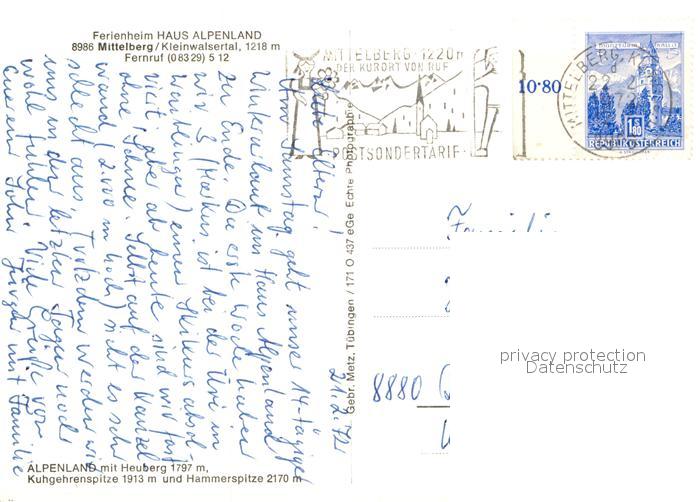 12996960 alte Postkarte Mittelberg Kleinwalsertal Ferienheim Haus Alpenland postalisch gelaufen Erhaltung siehe scans [KathaD81] KatCode: 11390