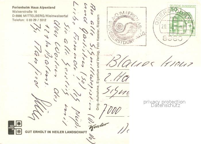 73647682 alte Postkarte Mittelberg Kleinwalsertal Ferienheim Haus Alpenland postalisch gelaufen Erhaltung siehe scans [WerneD78] KatCode: 11390