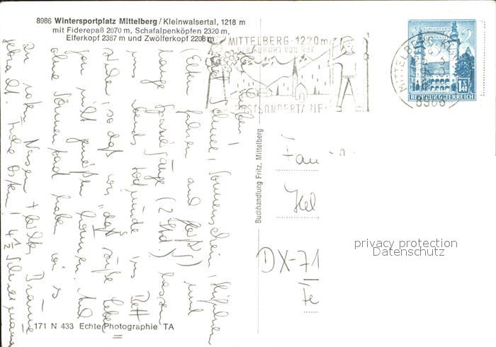 72567107 alte Postkarte Mittelberg Kleinwalsertal Fliegeraufnahme mit Fiderpass Schafalpenkoepfen Elferkopf postalisch gelaufen Erhaltung siehe scans [LiesaD40] KatCode: 11390