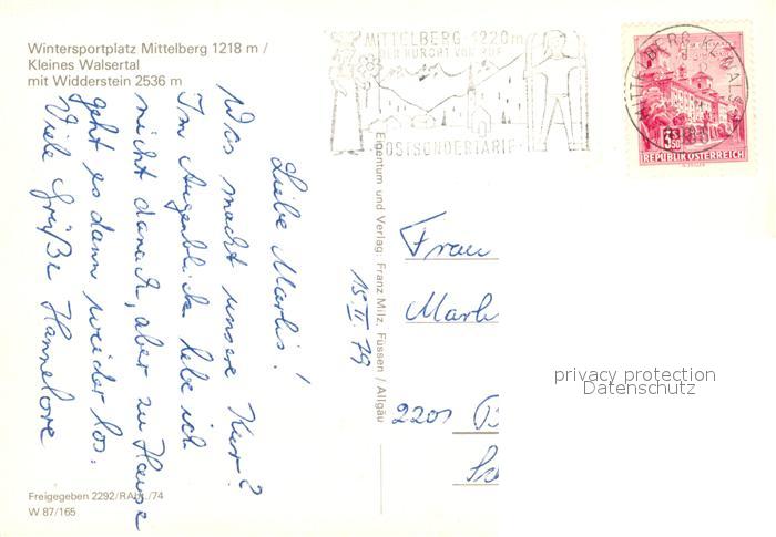 73323829 alte Postkarte Mittelberg Kleinwalsertal Fliegeraufnahme postalisch gelaufen Erhaltung siehe scans [WerneD78] KatCode: 11390
