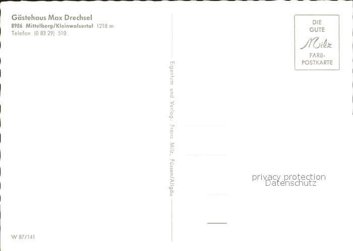 72112976 Mittelberg Kleinwalsertal Gaestehaus Drechsel Lebensmittel postalisch nicht gelaufen Erhaltung siehe scans KatCode: 11390