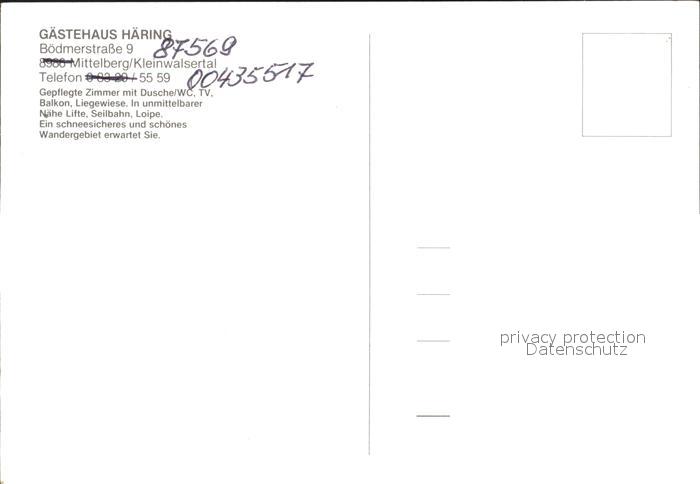 72279469 Mittelberg Kleinwalsertal Gaestehaus Haering postalisch nicht gelaufen Erhaltung siehe scans KatCode: 11390