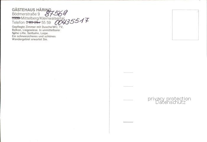 72277314 Mittelberg Kleinwalsertal Gaestehaus Haering postalisch nicht gelaufen Erhaltung siehe scans KatCode: 11390
