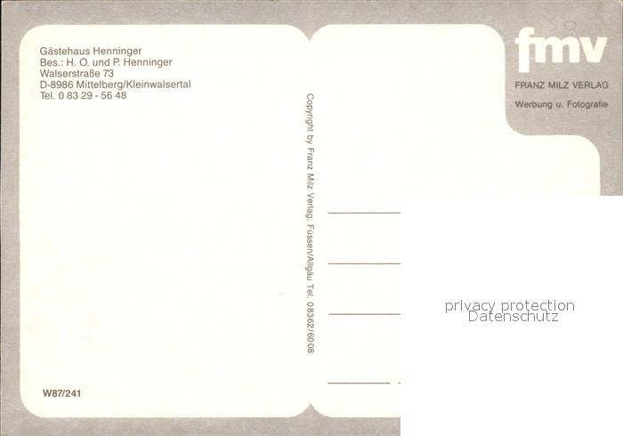 72205677 Mittelberg Kleinwalsertal Gaestehaus Henninger im Winter postalisch nicht gelaufen Erhaltung siehe scans KatCode: 11390