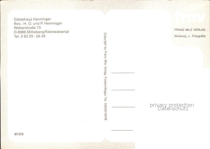 72205676 Mittelberg Kleinwalsertal Gaestehaus Henninger postalisch nicht gelaufen Erhaltung siehe scans KatCode: 11390