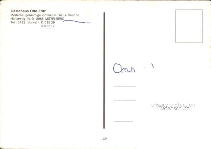 72428885 Mittelberg Kleinwalsertal Gaestehaus Otto Fritz postalisch nicht gelaufen Erhaltung siehe scans KatCode: 11390