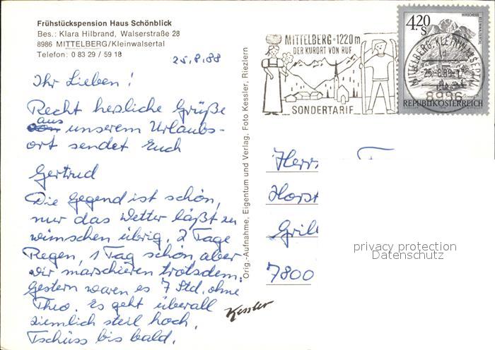 72484231 alte Postkarte Mittelberg Kleinwalsertal Gaestehaus Schoenblick Teilansichten postalisch gelaufen Erhaltung siehe scans KatCode: 11390
