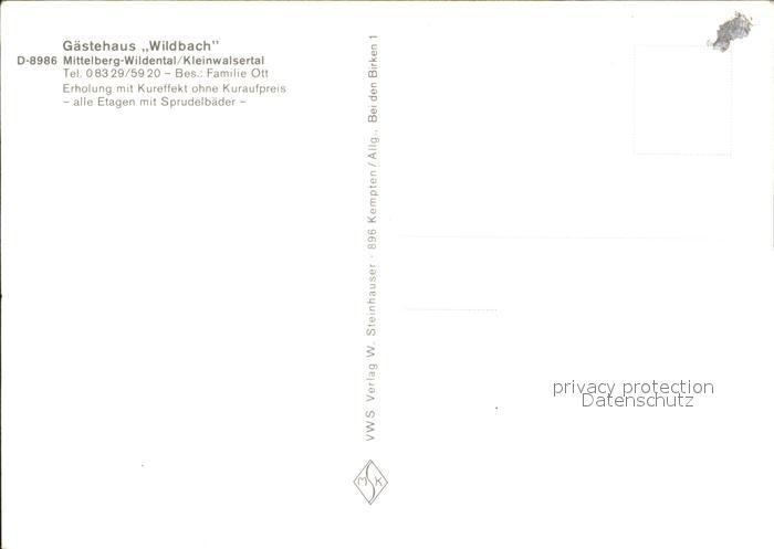71984507 Mittelberg Kleinwalsertal Gaestehaus Wildbach postalisch nicht gelaufen KatCode: 11390