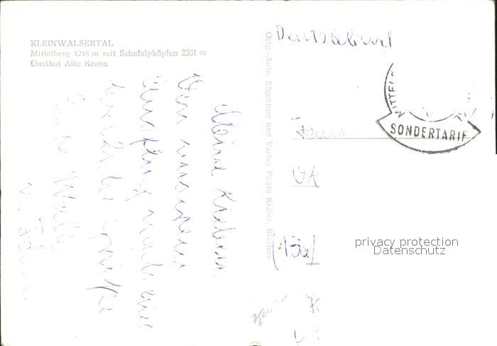 72229895 alte Postkarte Mittelberg Kleinwalsertal Gasthaus Alte Krone Skigebiet postalisch gelaufen Erhaltung siehe scans KatCode: 11390