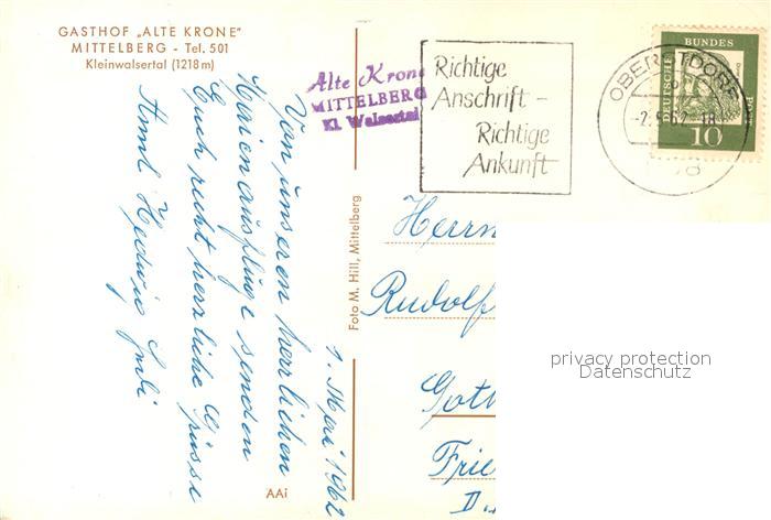 73056239 alte Postkarte Mittelberg Kleinwalsertal Gasthof Alte Krone Terrasse postalisch gelaufen Erhaltung siehe scans [WerneD78] KatCode: 11390