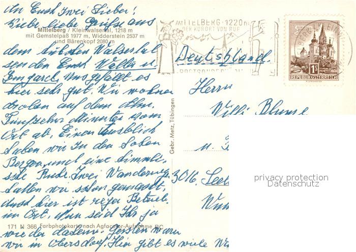 73129934 alte Postkarte Mittelberg Kleinwalsertal Gemstelpass Widderstein B&#228renkopf postalisch gelaufen Erhaltung siehe scans [KathaD81] KatCode: 11390