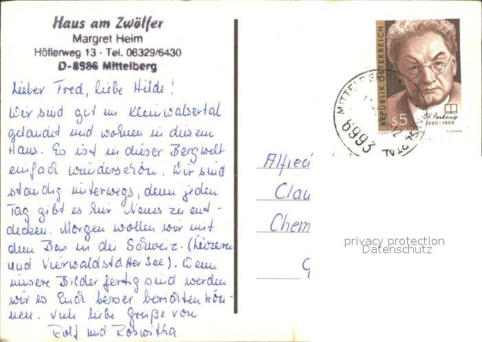71956017 alte Postkarte Mittelberg Kleinwalsertal Haus am Zwoelfer Terrasse postalisch gelaufen Erhaltung siehe scans KatCode: 11390
