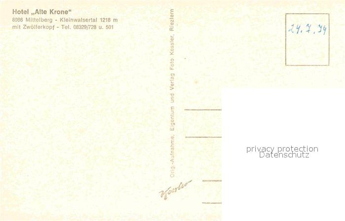 72656868 Mittelberg Kleinwalsertal Hotel Alte Krone postalisch nicht gelaufen Erhaltung siehe scans [AndreD76] KatCode: 11390