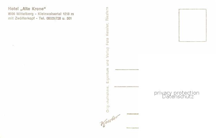 72697629 Mittelberg Kleinwalsertal Hotel Alte Krone mit Zwoeflerkopf Allgaeuer Alpen postalisch nicht gelaufen Erhaltung siehe scans [FriedD77] KatCode: 11390