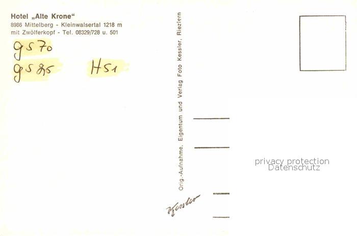 72895214 Mittelberg Kleinwalsertal Hotel Alte Krone postalisch nicht gelaufen Erhaltung siehe scans [AndreD76] KatCode: 11390