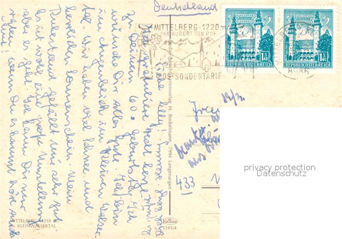 73359461 alte Postkarte Mittelberg Kleinwalsertal Kirche Schuesser Schafalpenkoepfe postalisch gelaufen Erhaltung siehe scans [WerneD78] KatCode: 11390