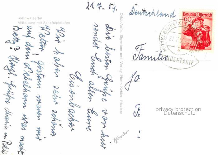 72751640 alte Postkarte Mittelberg Kleinwalsertal Kirche postalisch gelaufen Erhaltung siehe scans [AndreD76] KatCode: 11390