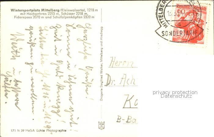 72490440 alte Postkarte Mittelberg Kleinwalsertal Kirchenpartie postalisch gelaufen Erhaltung siehe scans KatCode: 11390