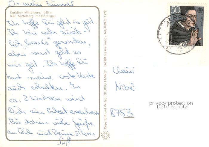 73740400 alte Postkarte Mittelberg Kleinwalsertal Kurklinik Mittelberg postalisch gelaufen Erhaltung siehe scans [FriedD77] KatCode: 11390