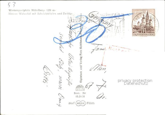 72432680 alte Postkarte Mittelberg Kleinwalsertal mit Schafalpkoepfen und Zwoelfer postalisch gelaufen Erhaltung siehe scans KatCode: 11390